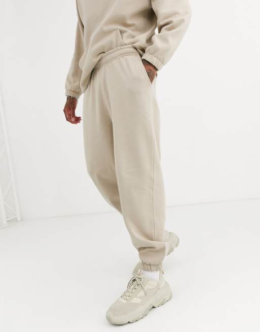 Asos Design Oversized Tracksuit With Hoodie Relaxed Sweatpants In Beige