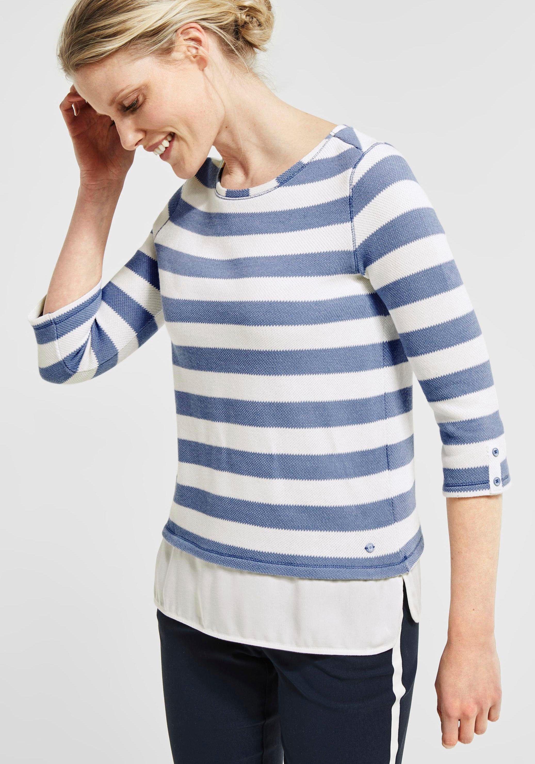 Cecil Rundhalspullover Astrid Gestreifter Pullover Im 2 In 1 Look
