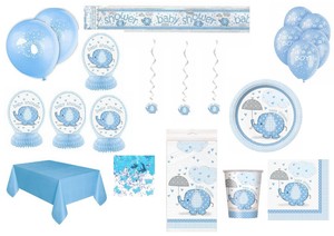 Details Zu Baby Shower Party Junge Geburt Hellblau Elefant Deko Set Partyartikel Babyparty