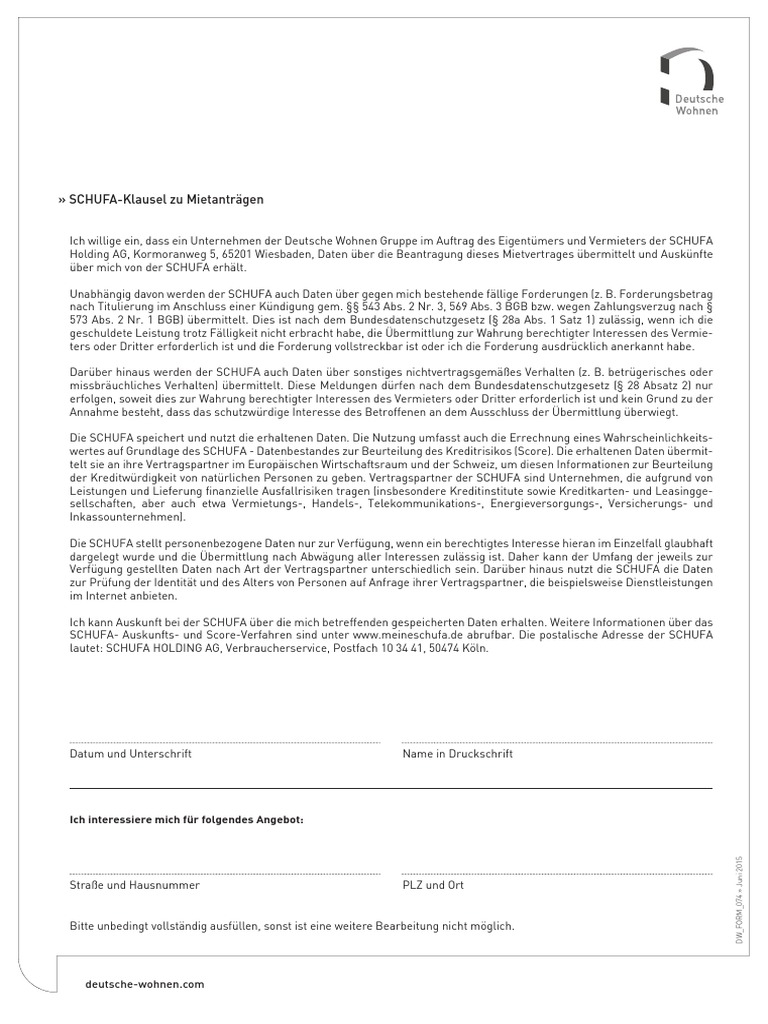 Deutsche wohnen selbstauskunft. Mir uns ist bekannt dass die selbstauskunft von uns nicht verlangt werden kann jedoch der vermieter seine. Wohnungsbewerbern einen fragebogen zur mieter selbstauskunft vorzulegen ist ublich und legitim. 12 externe datenschutzbeauftragte aller gesellschaften der deutsche wohnen gruppe ist rechtsanwaltin. Wir erklaren wie es geht in drei einfachen schritten.
