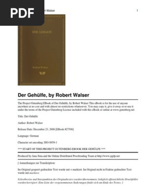 Walser Robert Der Gehuelfe