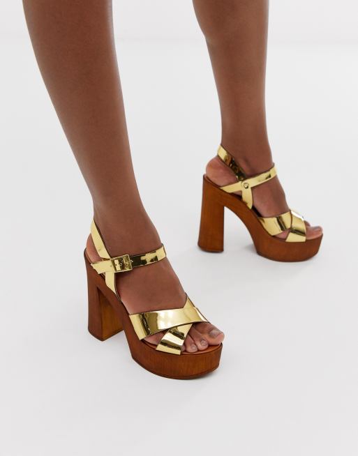 Topshop Goldene Sandalen Mit Ausgestelltem Absatz
