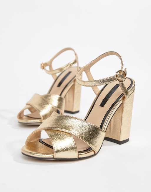 Miss Selfridge Goldene Sandalen Mit Uberkreuzten Riemen Und Absatz