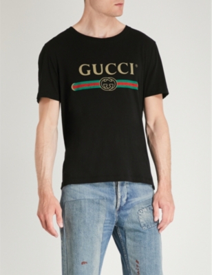 Gucci Fake Logo Print Cotton Jersey T Shirt Selfridges Com