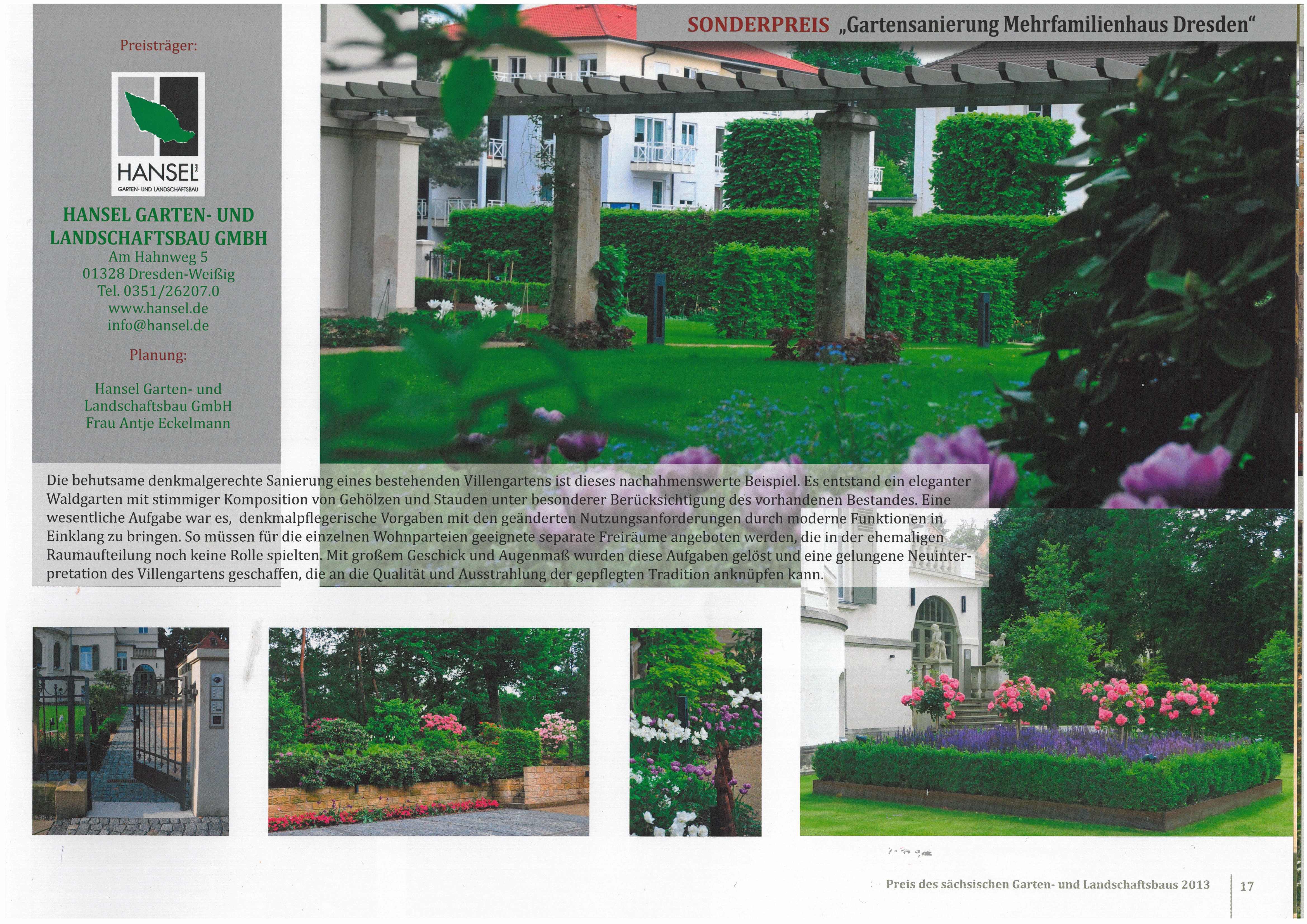 Wir wurden uns freuen wenn sie uns dort besuchen und ihre positiven erfahrungen in form einer kurzen bewertung hinterlassen. 21032019 hansel garten und landschaftsbau gmbh in dresden landschaftsgartner. Seit 1992 planen und gestalten wir in dresden und umgebung fur sie hochwertige private garten und wasseranlage nach ihren wunschen und schaffen fur sie den optimalen erholungs und ruckzugsraum. Ihr garten soll etwas besonderes sein.