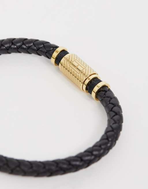 Tommy Hilfiger Braided Bracelet In Black Gold