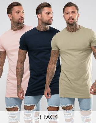 Asos Design 3 Pack Super Longline T Shirt With Crew Neck Save