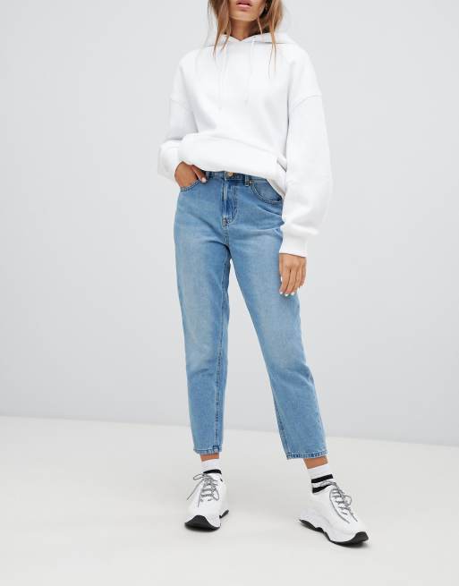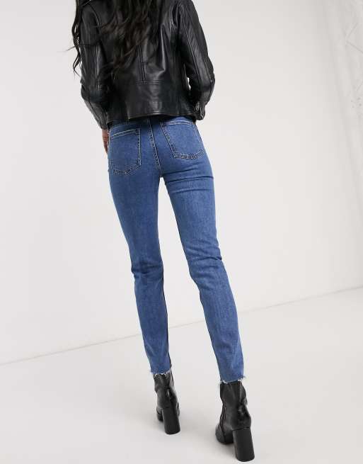 Only High Waist Distressed Mom Jean In Blue