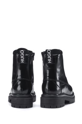 Schnurstiefeletten Aus Glanzendem Italienischem Leder