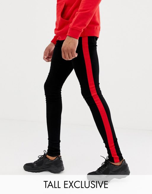 Sixth June Superenge Jeans In Schwarz Mit Rotem Seitenstreifen Exklusiv Bei Asos