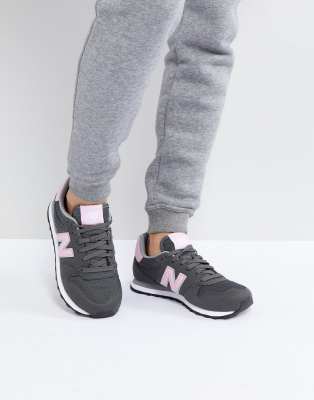 New Balance 500 Trainer In Grey And Pink