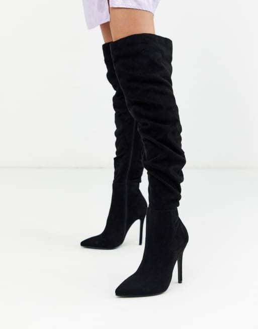 Prettylittlething Knautschige Overknee Stiefel Mit Absatz In Schwarz