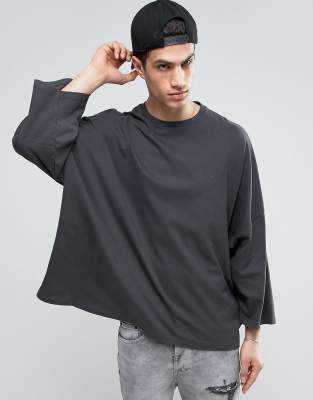 Asos Extreme Oversized Boxy 3 4 Sleeve T Shirt With Wide Sleeves In Washed Black