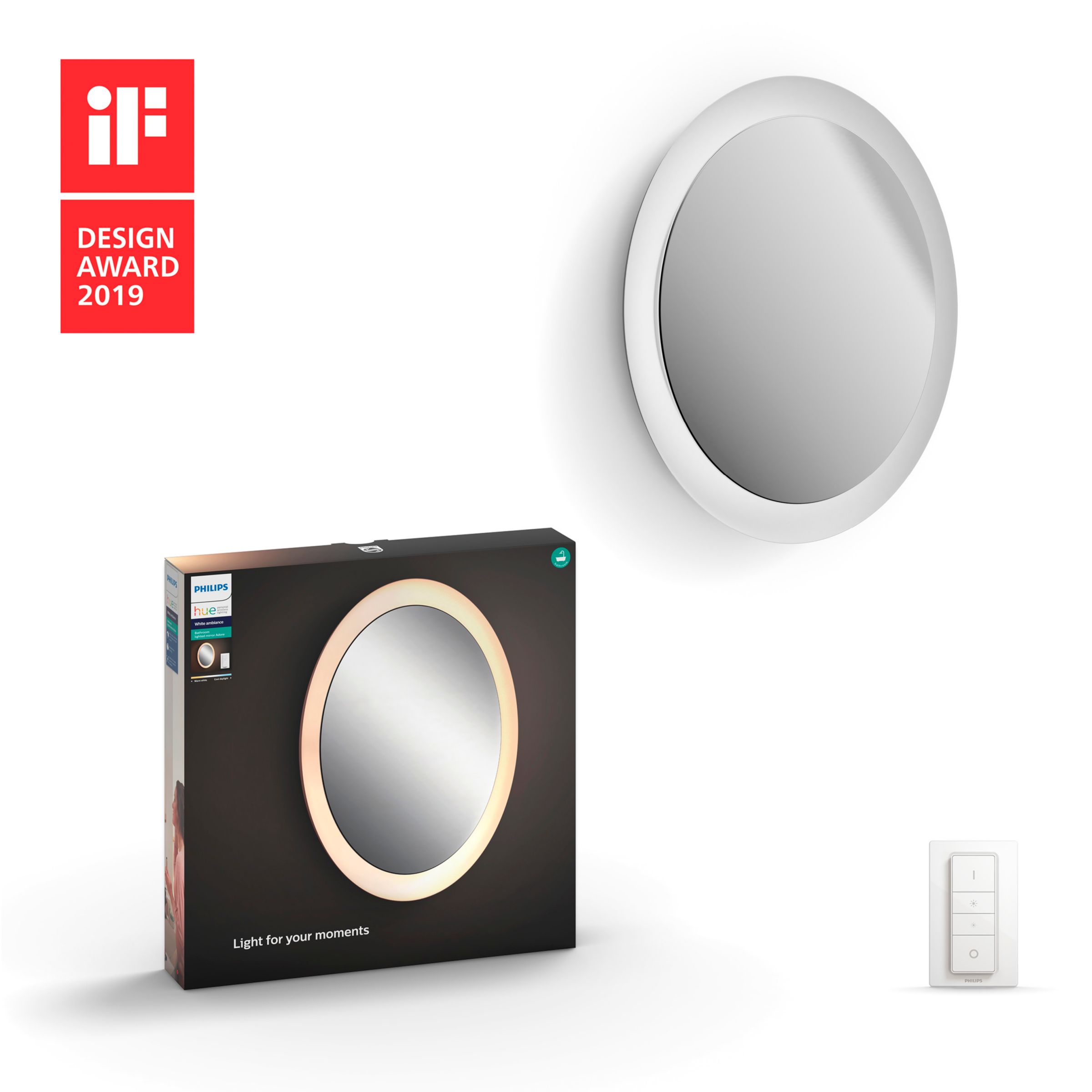 Dimmschalter die hue adore spiegelleuchte fur ihr badezimmer mit integriertem energiesparenden led modul kann uber den im lieferumfang enthaltenen hue dimmschalter oder per hue app mit der separat erhaltlichen hue bridge gesteuert werden.