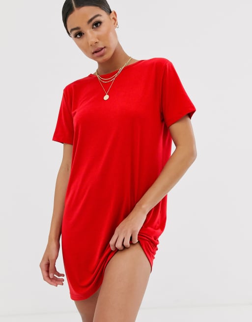 Missguided Rotes T Shirt Kleid Mit Uberkreuzten Ruckentragern