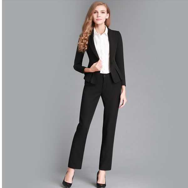 Schwarze Womens Business Anzuge 2 Stuck Formale Hosenanzuge Fur Hochzeiten Smoking Weibliche Buro Uniform Damen Formelle Anzuge