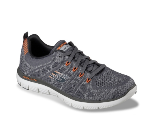Athletic woven mesh fabric and synthetic upper in a lace up athletic training sneaker with stitching accents. Skech knit mesh one piece fabric upper in a lace up athletic training sneaker with stitching accents. Fast delivery and 247365 real person service with a smile. Lightweight comfort gives you athletic versatility in the skechers flex advantage 20 the happs shoe.