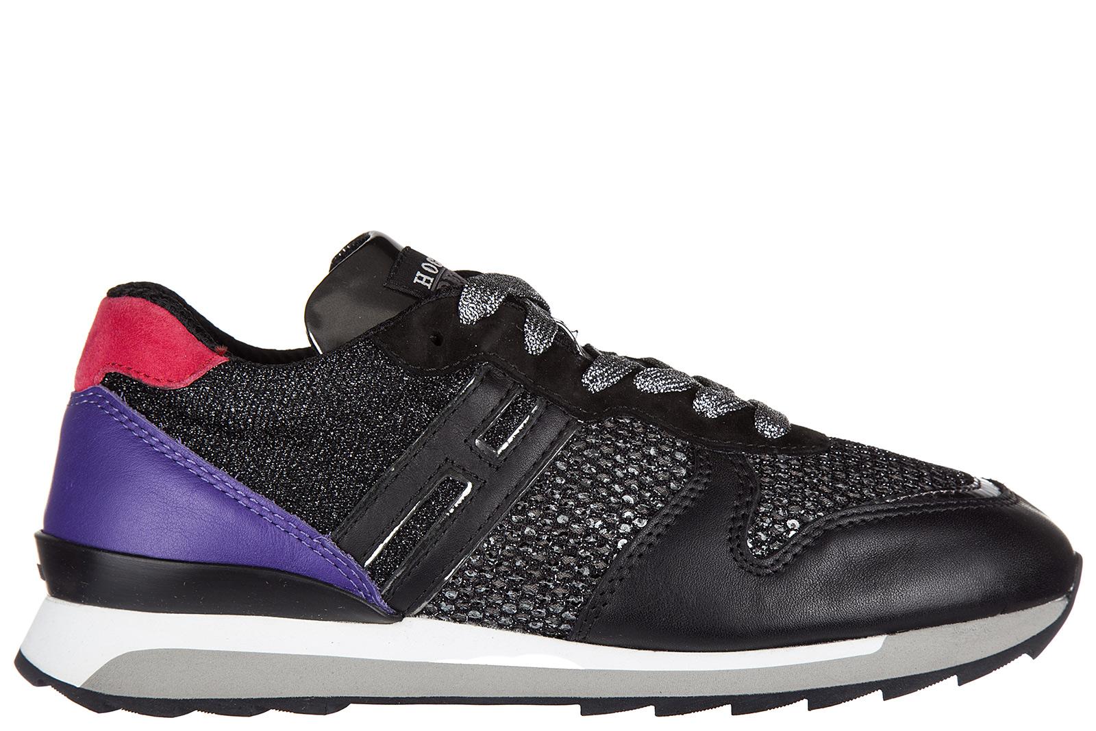 Hogan Damen Schuhe H222 Schwarz Leder Sneaker Mit Stitchings