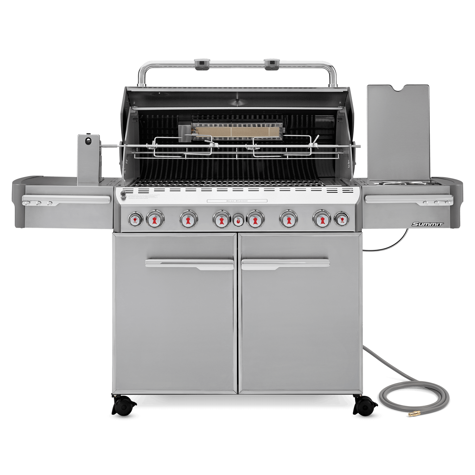 Summit s 670. Become the envy of every backyard and exceed the unexpected. From burgers on the grate to crispy chicken on the rotisserie or even adding a touch of smoke to any dish. As part of the summit s series the s 670 gas grill has a front mounted lighted control panel with six stainless steel burners and a snap jet individual burner ignition system. Fire up your summer with the weber summit s 670 stainless steel propane grill.