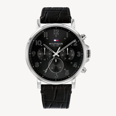 Tommy Hilfiger Men S Sport Luxury Stainless Steel Watch With Black Leather Band