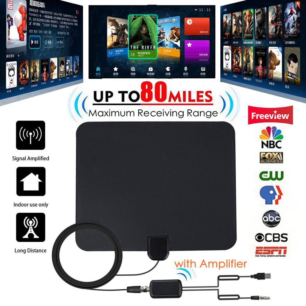 80 Miles 4k Hdtv Digital Antena Indoor Hd Tv Antenna With Amplifier Tv Radius Vhf Uhf 28 Dbi Hd Tv Antennas Aerial
