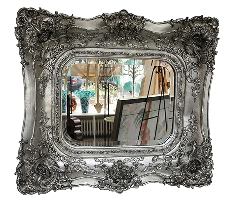 Aubaho Spiegel 65x72cm Wandspiegel Silberfarben Verzierungen