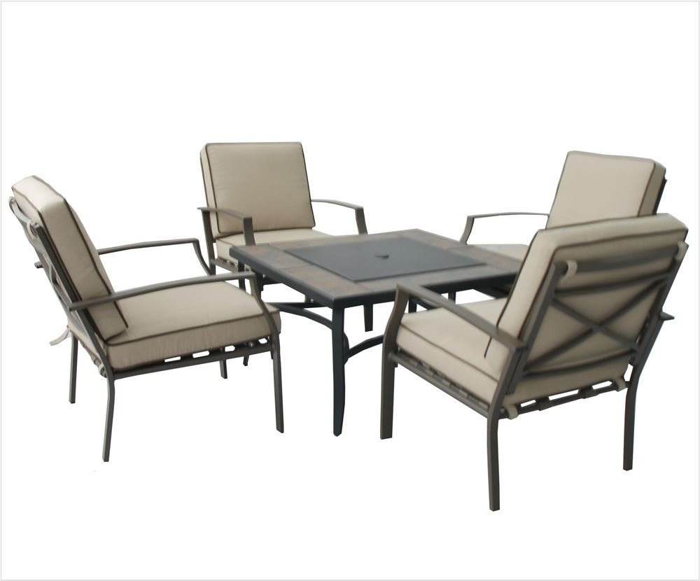 Arni Feuerstelle Gartenmobel Set Mit 4 Stuhlen Braun Natur
